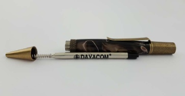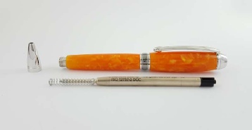 Insert into the nib tube then, then seat the twist mechanism onto the end of the cartridge, and push up to the nib section to screw onto it. Make sure the threads mesh correctly,then tighten. By twisting the top of the mechanism make sure the writing point extends and retracts satisfactorily.