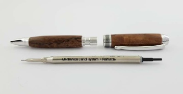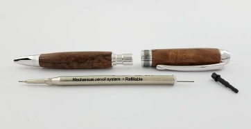 Reassembly is the reverse of this procedure. To line up the grain or pattern, of the turned sections gently line up the grain by offering the two sections together, then carefully screw them together. The final tightening will advance the lead.